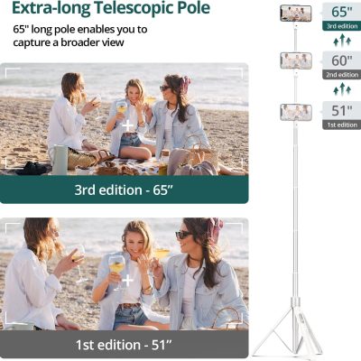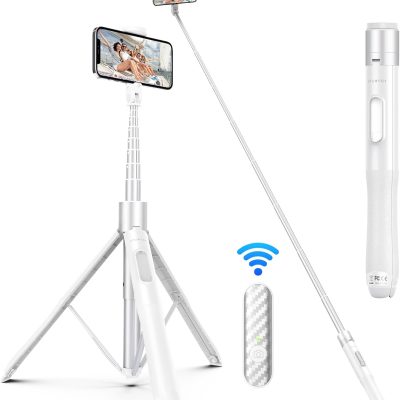 ATUMTEK 65″ Selfie Stick Tripod, All in One Extendable Phone Tripod Stand with Bluetooth Remote 360° Rotation for iPhone and Android Phone Selfies, Video Recording, Vlogging, Live Streaming, White