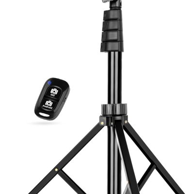 UBeesize 62″ Phone Tripod & Selfie Stick, Camera Tripod Stand with Wireless Remote and Phone Holder,Compatible with iPhone Android Phone, Perfect for Selfies/Video Recording/Live Streaming Black