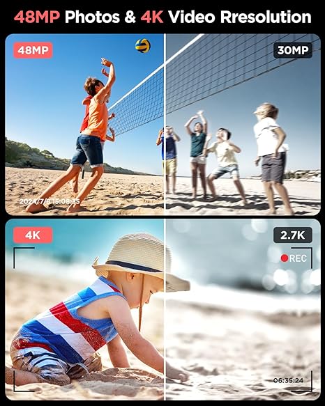 - 2024 Upgraded Digital Camera】The point and shoot digital cameras is equipped with a high-performance CMOS sensor and an IPS color screento easily capture 48MP HD and true color images and supports 2.7K HD video recording.