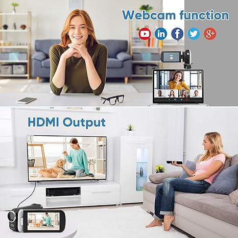- 【Webcam Function & HDMI Output】Use this digital video camera for video chats and live streaming. Simply connect it to your PC via USB and select “PC Camera” mode to activate the webcam function.